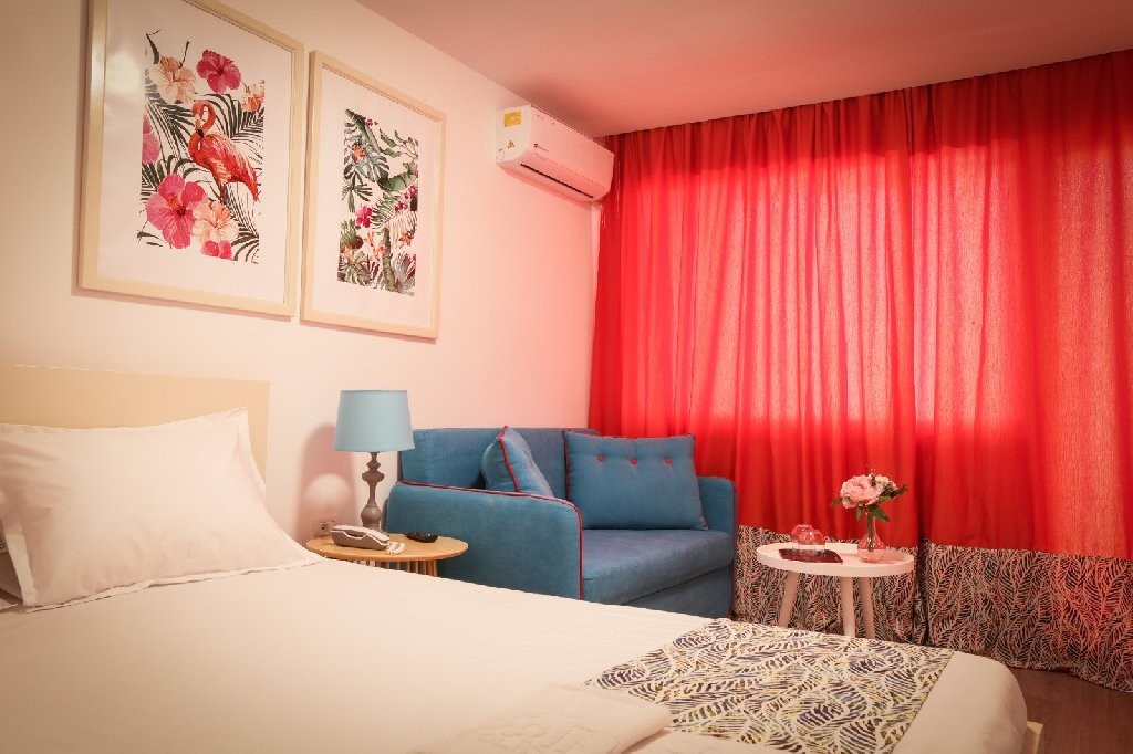 Camera twin a cuprinde un spatiu deschis cu o suprafata de 18 mp, zona pentru dormit cu un pat matrimonial, cu sau fara canapea extensibila 134cm*194cm, baie cu dus, balcon.