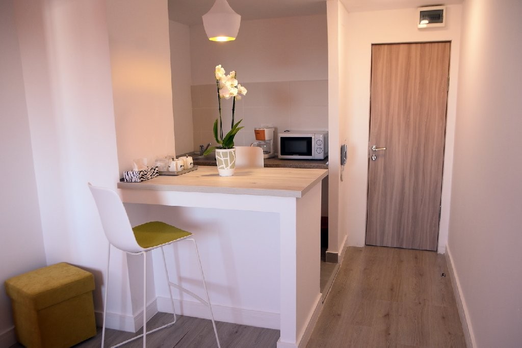 Junior Suite a cuprinde un spatiu de 32 mp, format dintr-un living cu canapea fixa sau extensibila si un dormitor cu pat matrimonial, 1 baie cu dus, balcon deschis si chicineta dotata cu chiuveta, cuptor cu microunde, frigider, masa de calcat, uscator de par, fier de calcat.
